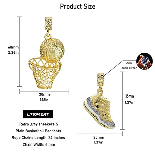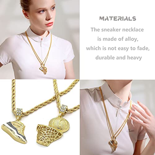 Men’s Hip Hop Sports Necklace Gold Plated Vintage Black Sneakers and Basket Fade Resistant 24″ Cord Chain