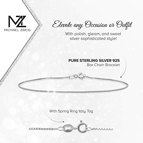 Michael Zweig 925 Sterling Silver Bracelets for Women – Box Chain Sterling Silver | 7 in Length, 1.15 mm Thickness with Spring Ring, Italy Tag
