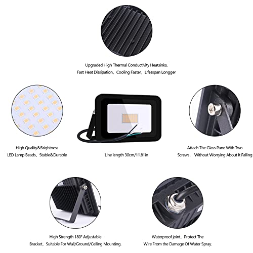 ![MIHEAL 110V(2 Pack) 30W LED Flood Light, Warm White(2700K), IP68Waterproof Super Bright Security Lights, Outdoor Floodlight for Yard, Garden, Playground, Basketball Court [Energy Class A++] - Image 6](https://m.media-amazon.com/images/I/41SKi4-IFeL.jpg)