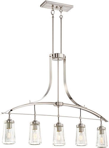 Elevate your home decor with the Minka Lavery Poleis Island Chandelier. This stunning brushed nickel fixture features 5 lights with a total wattage of 300, providing ample illumination for your space. Perfect for adding a touch of modern elegance to your kitchen or dining area. Upgrade your lighting with this sleek and stylish chandelier today.
