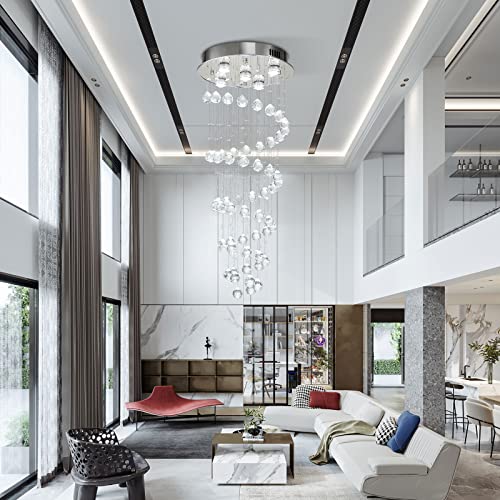 Modern K9 Crystal Spiral Raindrop Chandelier – Flush Mount LED Ceiling Light Fixture Pendant Lamp for Dining Room Bathroom Bedroom Livingroom