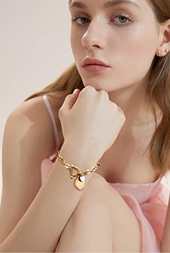 Muyola Women’s Stainless Steel Heart Bracelet – Toggle Bracelets For Women – Fashion Zircon Bracelet For Girls – Toggle Clasp – Lover Gift (Gold)