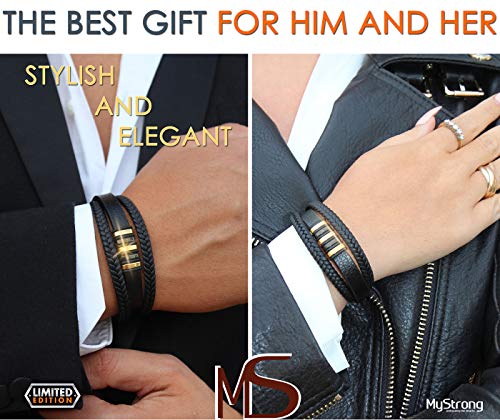 MyStrong Genuine Leather Mens Bracelet – Premium Braided Leather Bracelet for Men and Women with Stainless Steel Magnetic Clasp – Multi-layer Braided Bracelets for Men – Leather Cuff Boys Bracelet