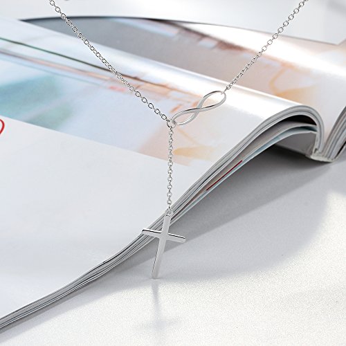 Y necklace with infinity and cross element.
