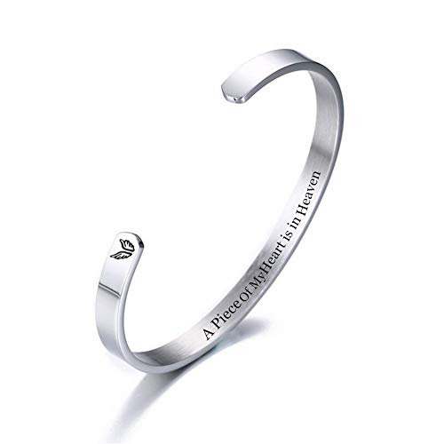 N+A Uncle Memorial Bracelet for Women Men,Stainless Steel Sympathy Bracelets Loss of Loved Uncle Keepsake Motivational Remembrance Cuff Bangle Memorial Jewelry Gift(A Piece of Heart is in Heaven)