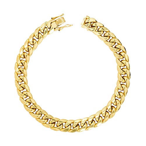 Nuragold 14k Yellow Gold 9mm Thick Miami Cuban Link Chain Bracelet, Mens Wide Jewelry Box Clasp 7″ 7.5″ 8″ 8.5″ 9″