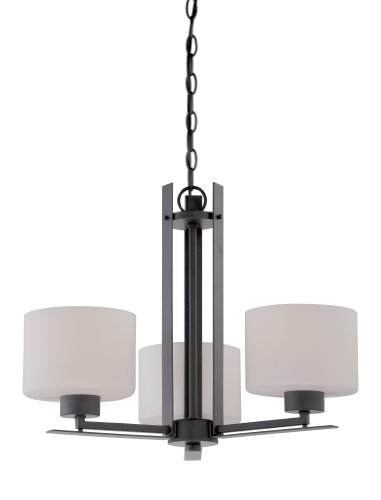 Nuvo Lighting 60/5306 Transitional Three Light Chandelier from Parallel collection in Bronze/Dark finish, Height: 17. 25 inches Width: 23. 00 inches Style: Transitional Light Type: Chandelier Safety Rating: UL and Number of Lights: 3, Bulb Type: A19, Bulb(s) Included: No