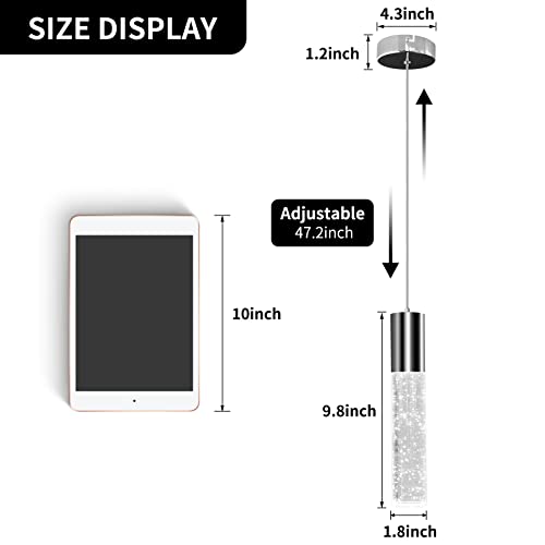 OKELI Modern Pendant Light, LED Bubble Crystal Kitchen Island Lights Fixtures,Chrome Mini Single Island Lights Pendant Lighting for Kitchen Island Dining Room Bedroom Hallway Bar,6W,6000K,ETL
