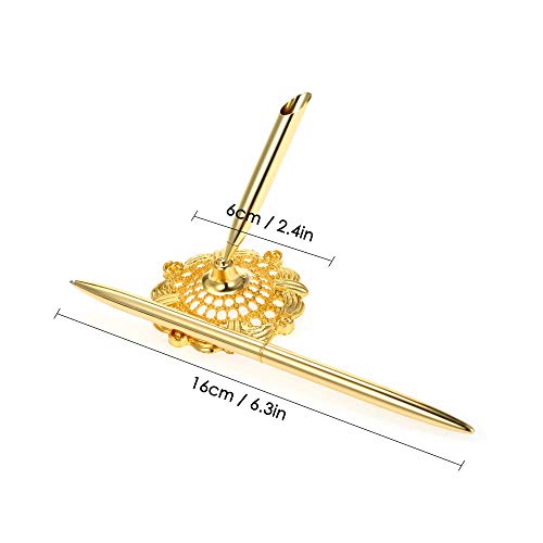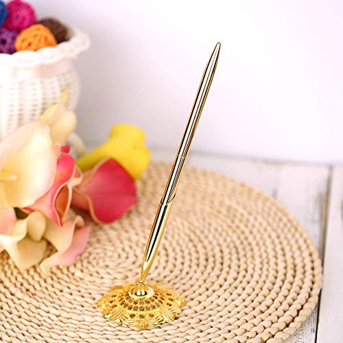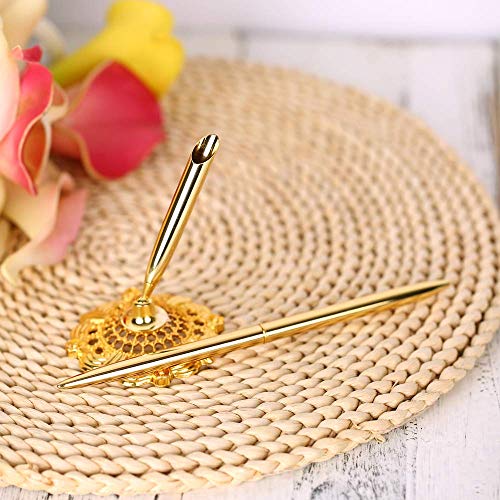 Onwon 2 Pieces Golden Wedding Pen Guest Signing Pen with Hollow Round Pen Holder Sign Writing Pen for Wedding Bridal Golden