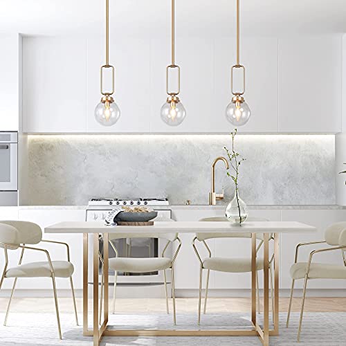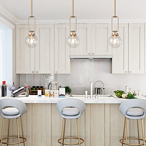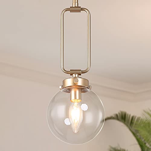 Optimant Lighting Modern Glass Globe Pendant Light, Gold Hanging Orb Lighting Fixture for Kitchen Island, Dining Room, Living Room, Entryway, Hallway, and Bedroom