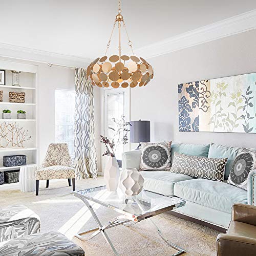 Height Adjustable — The gold chandelier is equipped with a 59″ height adjustable chain, allow you to adjust the overall height of the light fixture from Min 28″ to Max 85″.