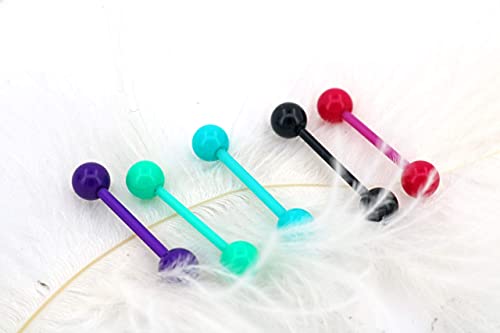 OUFER 14G 5PCS Soft Acrylic Tongue Rings Barbell Colorful Tongue Barbell Tongue Piercing for Women