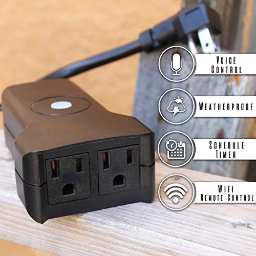 Outdoor Smart Plug 2 Sockets WiFi Compatible with Alexa & Google Home Devices ~ Wireless Remote Control Timer & On/Off with App (WiFi 2 Outlet)