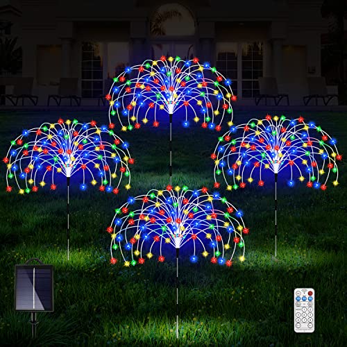 Outdoor Solar Garden Lights, 4Pack Fireworks Solar Garden Lights Decorative, 120LED Waterproof Firefly Lights Solar Outdoor Pathway Lights Decor for Backyard Garden Yard Decorations Outdoor,Colorful