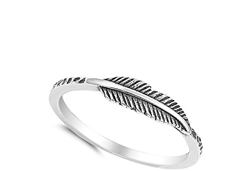 Oxidized Leaf Fashion Feather Ring New .925 Sterling Silver Band Size 6