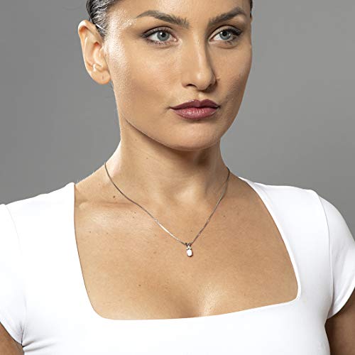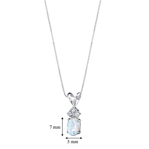 PEORA 14K White Gold Created White Opal with Genuine Diamonds Pendant, Dainty Solitaire, Oval Shape, 7x5mm