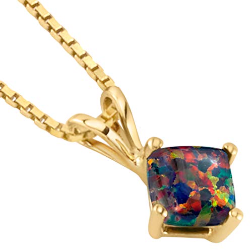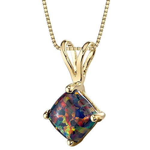 Peora 14K Yellow Gold Created Black Opal Pendant for Women, Classic Solitaire, AAA Grade Cushion Cut, 6mm, 0.50 Carat total