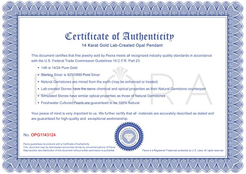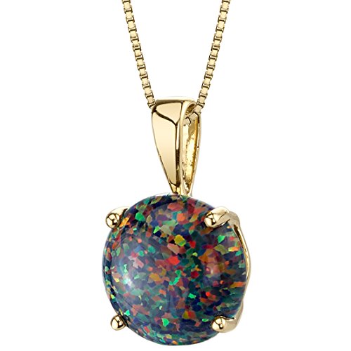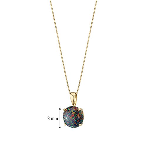 Peora 14K Yellow Gold Created Black Opal Pendant for Women, Classic Solitaire, Round Shape, 8mm, 1 Carat