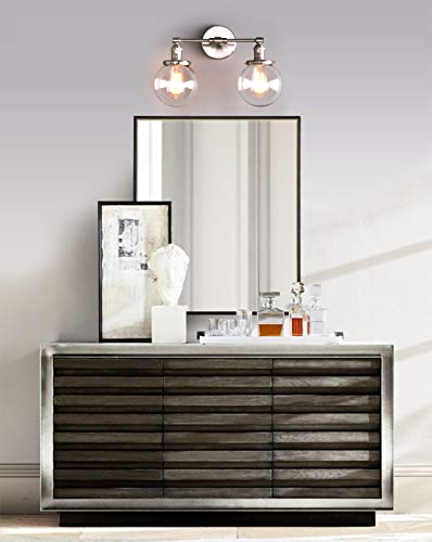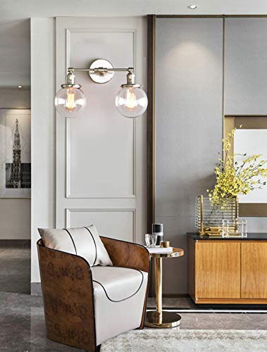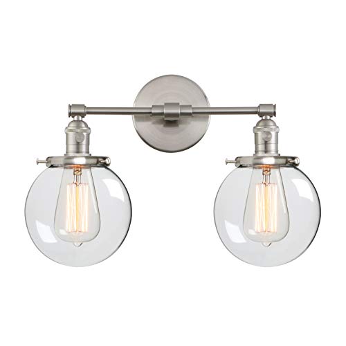 Phansthy Industrial Style Wall Light Clear Double Sconce with 5.9 Inches Glass Round Canopy On/Off Button(Brushed)