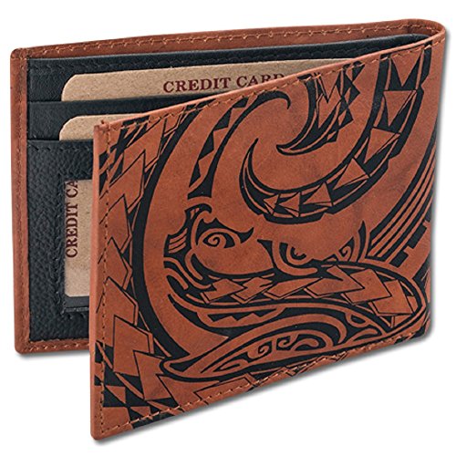 This Polynesian tattoo billfold wallet has a slim profile to easily fit into your back or front pocket and has been crafted with love and care.