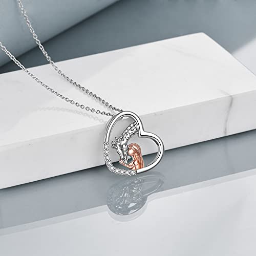 POPKIMI Sterling Silver Giraffe Necklace with Girl Giraffe Charm Heart Pendant Jewelry Giraffe Gifts for Women Daughter Girls Girlfriend