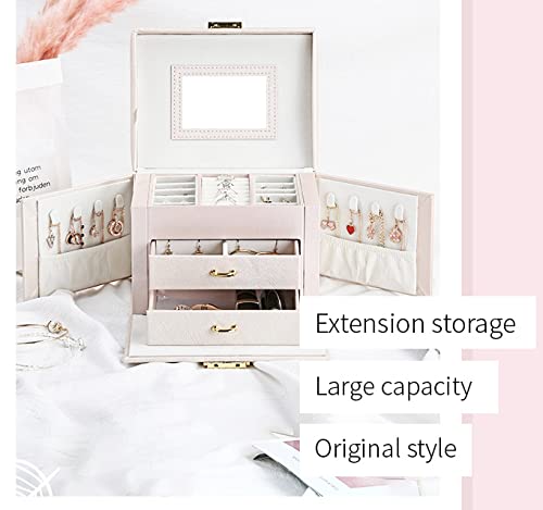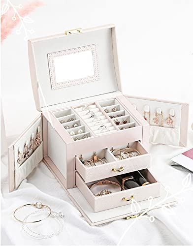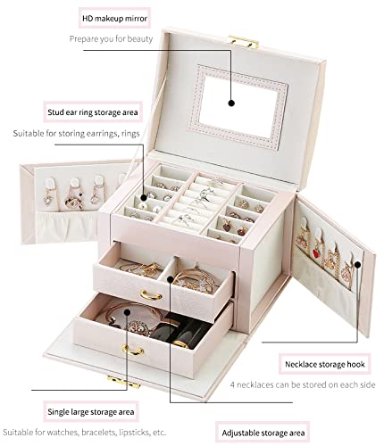 ProttyLife Jewelry Box For Women, 3 Layers Jewelry Boxes Jewelry Organizer Box Travel Jewelry case Necklace Holder Earring Organizer Mirror with Jewelry Storage