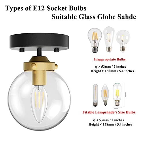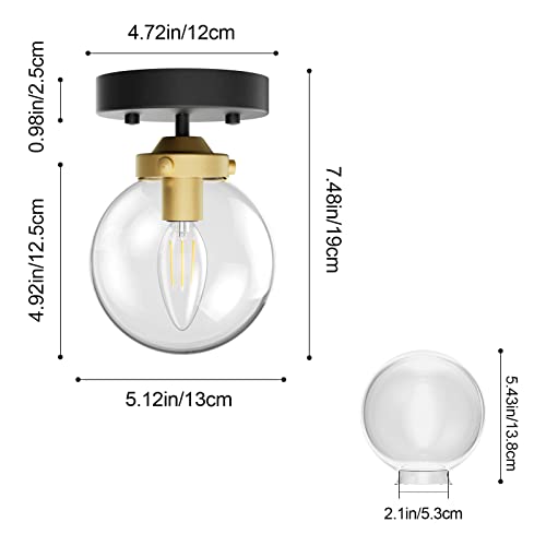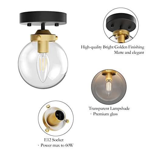 【Design】Black and gold close-to-ceiling light fixtures. Glass lampshade adopts the traditional hand glassblowing, releasing bright light effect. Simple and elegant, features a antique farmhouse look and sends out a vintage feelings.