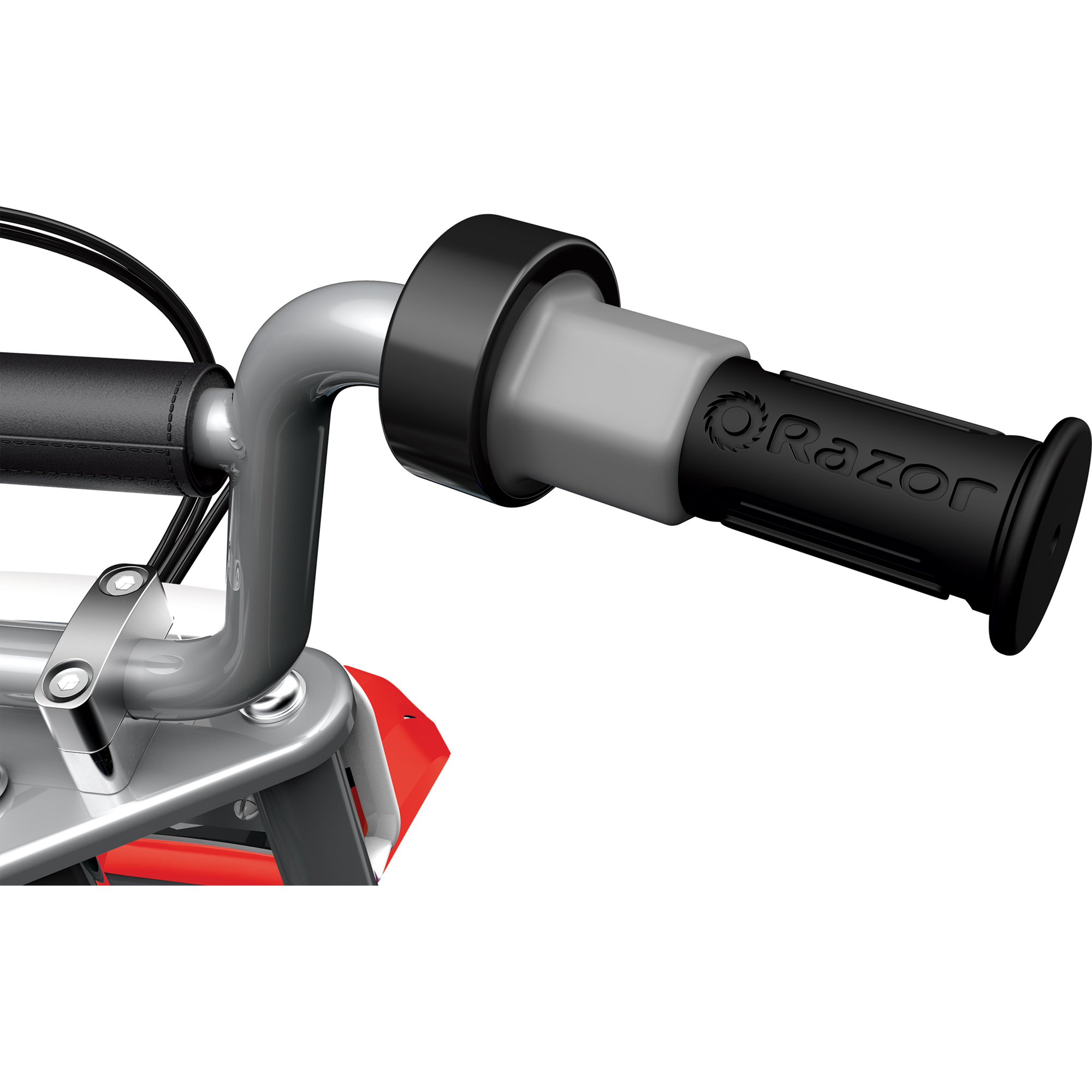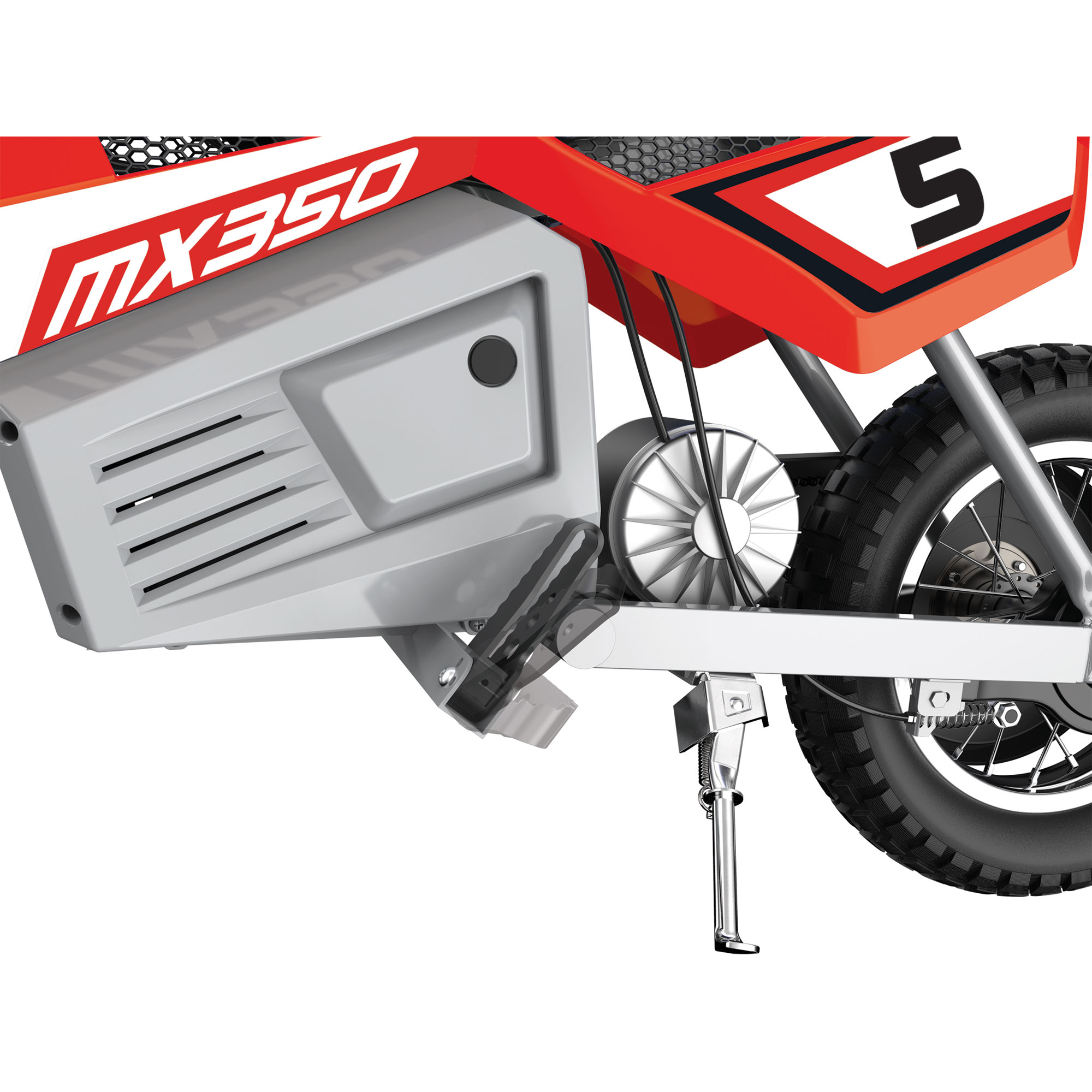 - High torque motor with twist grip throttle control kick the Razor Dirt Rocket MX350 into high gear at speeds up to 14 miles per hour