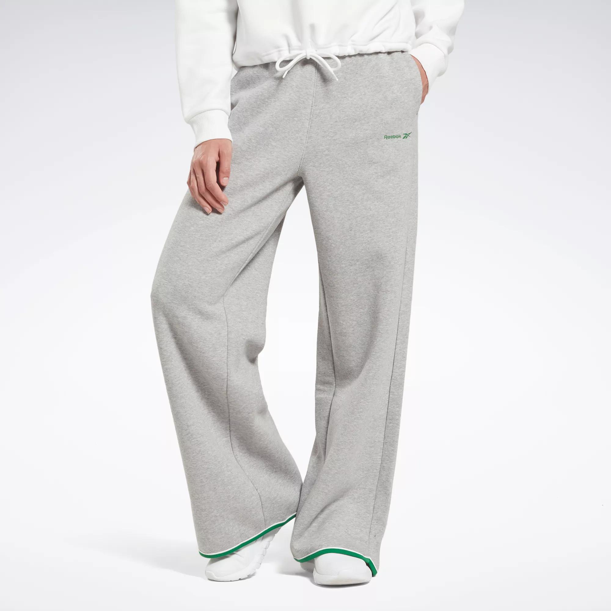 Contrast piping on these women’s Reebok pants adds a classically sporty look. Their loose fit and wide legs give them a slouchy silhouette that pairs well with slim tops. Wear them to the studio over your yoga tights, or wear them to meet friends for coffee.
