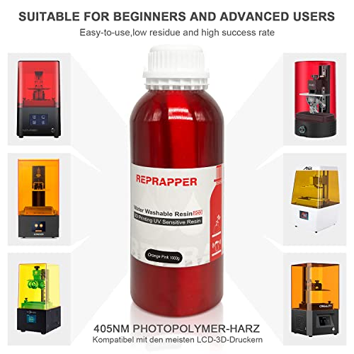 RepRapper 203 UV-Resin, Dual Color Water Washable 3D Resin for LCD 3D Printer 1000g Pinkish Orange