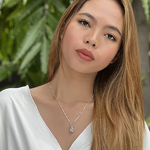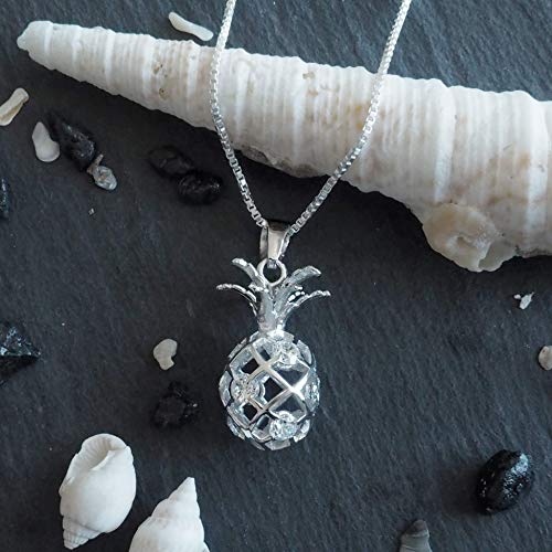 Rhodium Plated Sterling Silver Medium Pineapple Pendant Necklace, 16+2″ Extender
