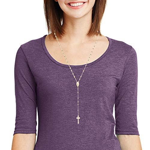 Ritastephens Italian Sterling Silver Gold-tone 3mm Rosary Bead Virgin Mary Cross Necklace, 30″