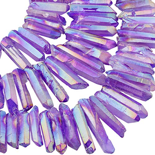 rockcloud Natural Rock Crystal Points Titanium Coated Clear Quartz Sticks Spikes Top Drilled 15 inch Strand,Light Purple