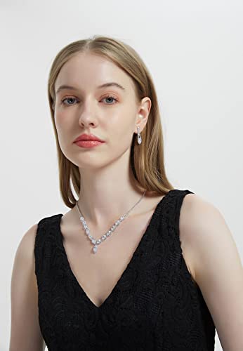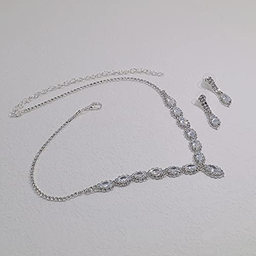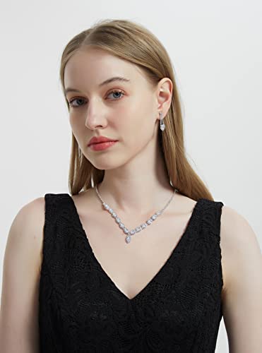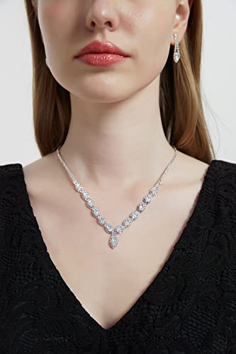 Ruzzykea CZ Rhinestone Necklace Earrings Jewelry Set For Bridal Bridesmaid Wedding Evening Party Prom (White Gold)