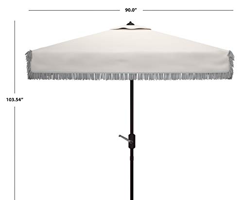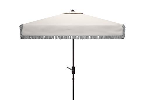 Summer afternoons at Mayfair’s exclusive private member’s club inspired this posh square crank umbrella. Its classic white fabric is paired with matching fringe for a touch of whimsy and exotic style.
