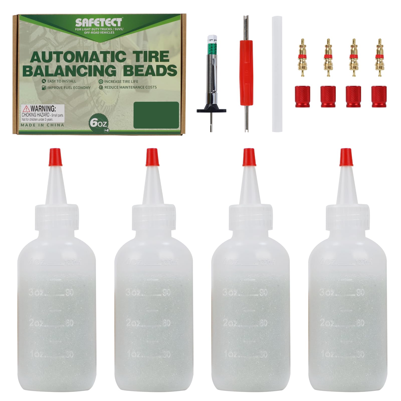 Safetect Tire Balance Beads 6 oz x 4, Wheel Balancing Beads for Trucks Tire, Trailer, Off-Road Vehicles, Tire Beads with Installation Tools