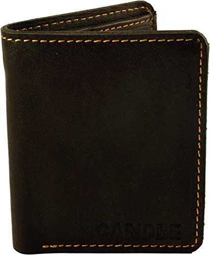 CANDLE Slim Genuine Leather Wallet for Men - Bifold RFID Blocking 8 Card Holders with ZIP Lock pocket 1 Cash compartment Gift Box