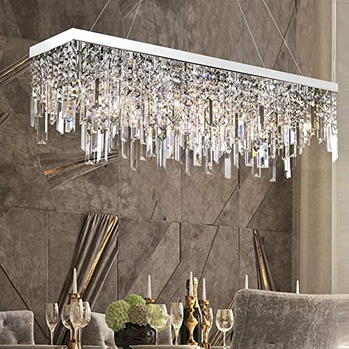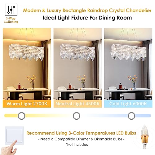 ✨【Modern Raindrop Chandelier】: With the upgraded polished chrome metal frame and exquisite K9 crystal strands, this rectangular crystal chandelier illuminates and sparkles up every angle in your house. The minimalist K9 crystal raindrop lampshade softens the light and casts a glamorous light effect across the ceiling, lovely chandelier light fixture for many spaces.