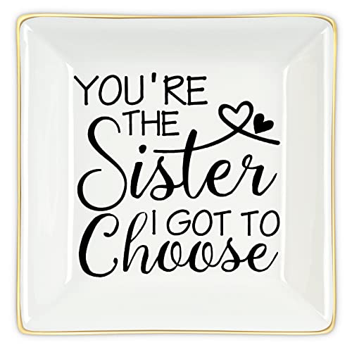 Sister Gifts for Women from Sister, You Are The Sister I Got to Choose Ring Trinket Dish Ceramic Jewelry Tray Birthday Gifts for Sister Women Friends Her Female Girls Bff Christmas Home Decor