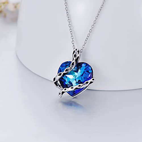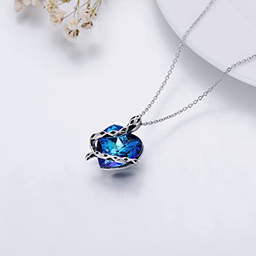 Snake Necklace Sterling Silver Animal Pendant with Blue Heart Sapphire Crystal from Austria, Snake Jewelry Gifts for Women Girls Snake Lovers