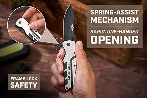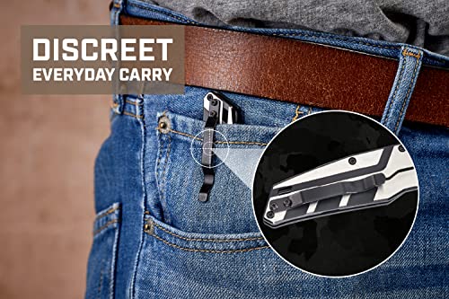 Designed to be durable and practical, the Spec Ops Tools FoldingPocket Knife is constructed with tough and wear resistant D2 high carbon steel, making this EDC a dependable knife that maintains a sharp edge while also resisting corrosion. With a classic drop point style blade that provides unmatched control, this pocket knife is sure to be your new go-to. This folding knife also offers allows for quick and easy one-handed opening, while the liner lock safety ensures safe operation everytime. The featured sturdy belt clip will secure your knife tightly to your pocket for discreet carrying. A lanyard hole on the back is constructed for retention systems or tie-downs. And with a guarantee to deliver a lifetime of mission capability on the world’s toughest job sites, this pocket knife has been drop tested to exceed MIL-SPEC standards. All Spec Ops tools are backed by our five-star, hassle-free lifetime warranty, and with each purchase made, we support our nation’s heroes by donating 3% of proceeds to veteran and first responder causes.