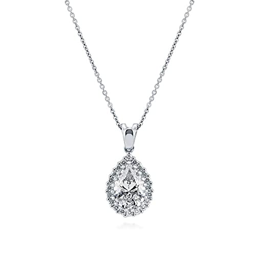 BERRICLE Sterling Silver Halo Pear Cut Cubic Zirconia CZ Anniversary Pendant Necklace for Women, Rhodium Plated 18 inch