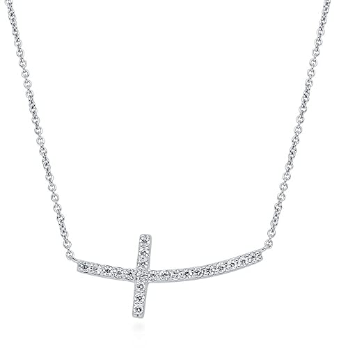 BERRICLE Sterling Silver Sideways Cross Cubic Zirconia CZ Fashion Pendant Necklace for Women, Rhodium Plated 16 inch