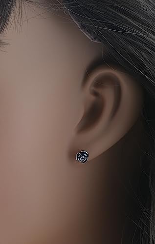 Enhance your elegance with these Rhodium Plated 925 Sterling Silver Black Enamel Women’s Small Rose Flower Stud Earrings. Meticulously crafted, these earrings feature delicate rose flower designs in black enamel, exuding a sense of grace and sophistication that’s perfect for various occasions. Elevate your style with the timeless beauty of these Rhodium Plated 925 Sterling Silver Black Enamel Women’s Small Rose Flower Stud Earrings. Experience the charm and sophistication they bring to any outfit.