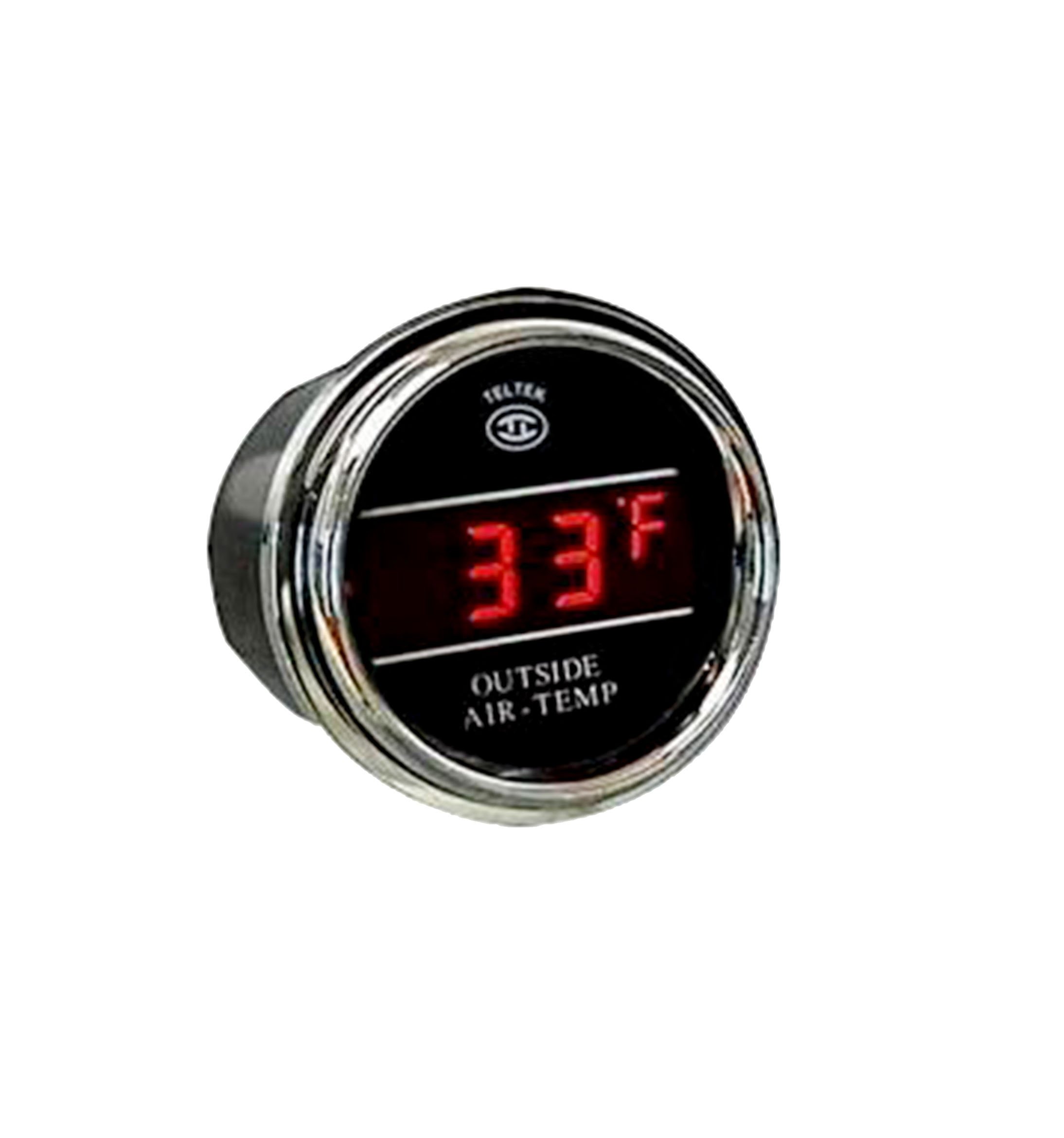 PRODUCT DESCRIPTION: The Truck and Auto Thermometer Gauge accurately displays the temperature inside or outside (one or the other) of your car, truck or semi. Teltek USA gauges are best in class and backed by over 20 years of design and manufacturing. If you need inside AND outside check out our dual temperature gauge! CONTENT: Keep your vehicle safe from freeway ice with the digital accuracy of a commercial automotive thermometer gauge. The gauge sensor can be installed inside the vehicle to measure inside temperature, or outside the vehicle (frequently behind the front bumper, or on the side view mirror) to measure outside temperature. This sleek and precise aftermarket digital gauge will complement your dash and report temperatures from 150° F to -99° F. With an extremely accurate sensor gauge of ±1° F, you will never have to worry about misreadings. The broad temperature range of 249° F allows drivers to travel from the Arizona desert in middle of summer up to the Northwestern Territory in the dead of winter with confidence that their digital outside air temperature gauge is running as strong as their vehicle. For temperatures 34° F or below, the auto thermometer gauge will flash an “ICE” warning momentarily as there may be ice on the road. The “ICE” warning will not flash again at 34° F unless the outside temperature increases to 37° F before dropping back down again. Without a temperature sensor and digital automobile gauge you and your car may be at risk every time you cross a bridge, head over a mountain pass or drive in the winter.