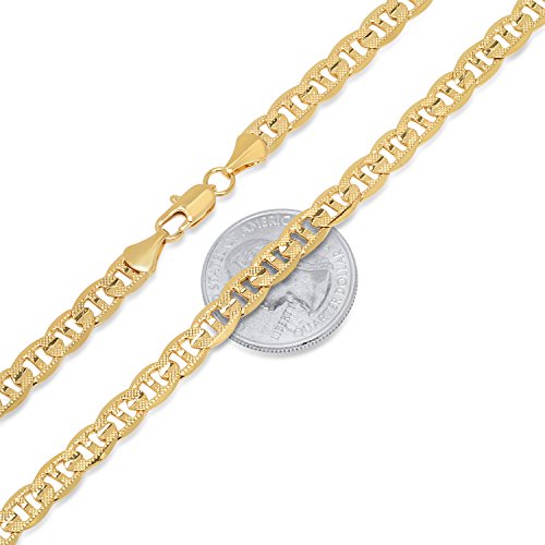 The Bling Factory 7mm 14k Yellow Gold Plated Flat Mariner Chain Necklace, 30 inches