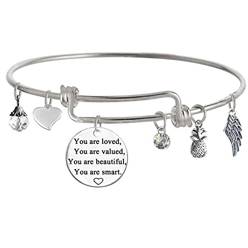 You are Loved You are Valued You are Beautiful You are Smart Inspirational Bracelet Expandable Bangle Gift for Women girl