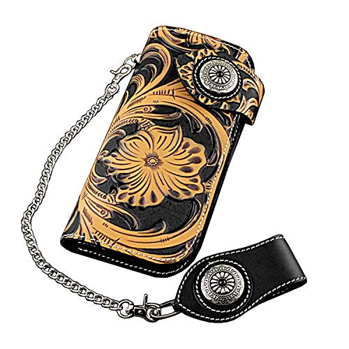 Toolen Flower Thick Leather Card Holder Mens Biker Chain Wallet HandBag Purse