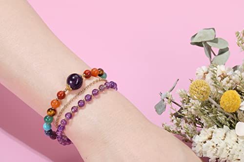 Top Plaza Healing Amethyst Crystals Bracelets for Women 7 Chakra Crystal Stone Bracelets 3 Layers 14K Gold Plated Bracelet Reiki Healing Gemstones Jewelry Girlfriend Mom Gifts