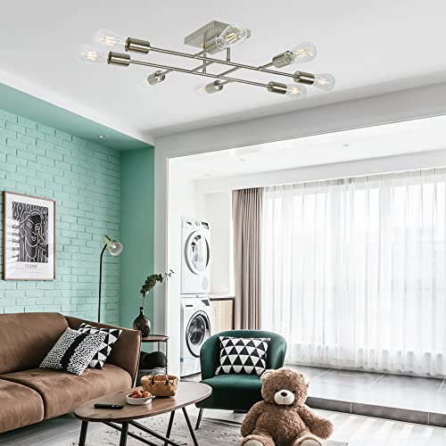 TULUCE 8 Light Modern Ceiling Light Vintage Metal Brushed Nickel Sputnik Chandelier Semi Flush Mount Ceiling Lamp Chandelier Lighting Fixture